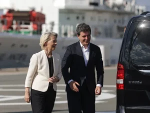 Președinta Comisiei Europene, Ursula von der Leyen și președintele Nicușor Dan s-au întâlnit, luni, la Baza 57 Aeriană „Mihail Kogălniceanu” și în Portul Militar Constanța.