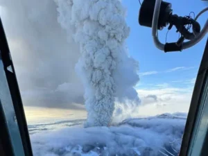 „Coloana s-a răspândit spre est, spre Oceanul Pacific”, a declarat aceeaşi sursă, adăugând că în calea sa nu se aflau zone rezidenţiale sau grupuri turistice, informează News.ro.