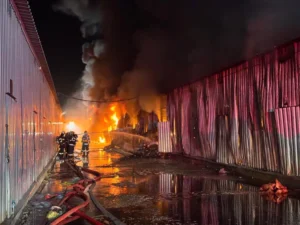 Incendiu masiv la Dragonul Roșu din București. Un depozit s-a prăbușit
